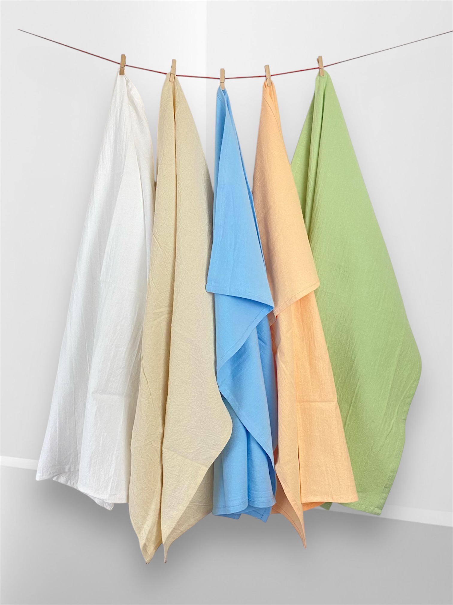 The Deluxe flour sack towel now comes in a sage pastel color! This imported towel is produced in our fair-trade partner facility in India and is the high standard for white, flat finish flour sack towels. Woven with cotton and a matching thread count to our Premium line, this towel features more uniform sizes, a more open weave, and a flat finish. Unlike our other lines – this one comes with a back corner hanging loop. If you want high-quality with no compromises, you want to try our Deluxe kitchen flour sack towels!